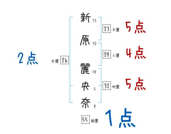 新原麗央奈さんの画数の鑑定結果