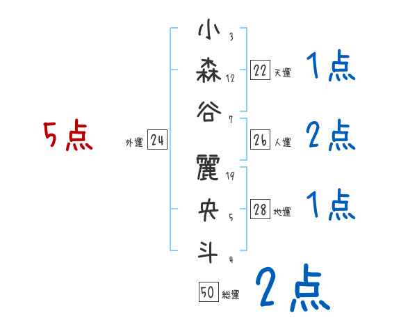 小森谷麗央斗さんの画数の鑑定結果