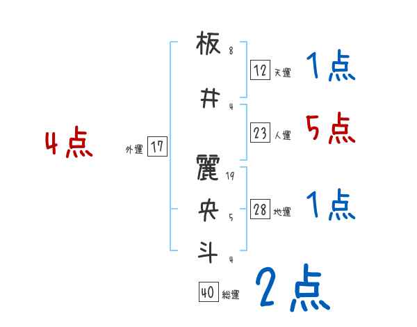 板井麗央斗さんの画数の鑑定結果