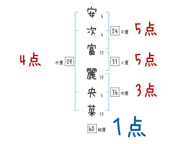 安次富麗央菜さんの画数の鑑定結果