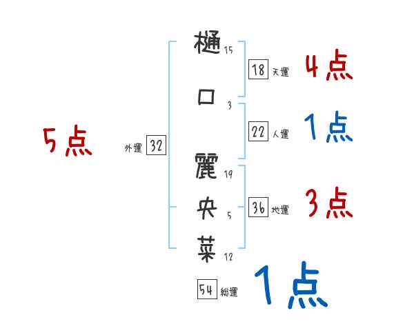 樋口麗央菜さんの画数の鑑定結果