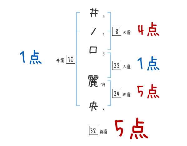 井ノ口麗央さんの画数の鑑定結果