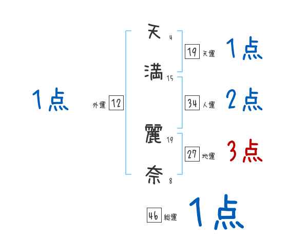 天満麗奈さんの画数の鑑定結果