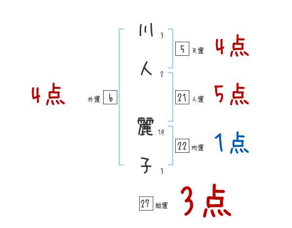 川人麗子さんの画数の鑑定結果