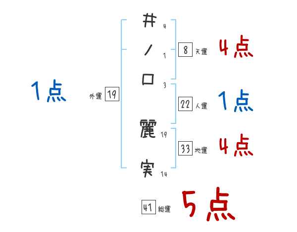 外運![]() | 井ノ口麗実さんの外運は19画の1つ星!優れた才能を持ちますが、協調性が足りないことも。周りの人と協力する事を意識しましょう。 生活面を象徴する運勢です。外部から受ける影響力を表し、結婚運、家庭運や職場、環境への順応性を表します。 |
