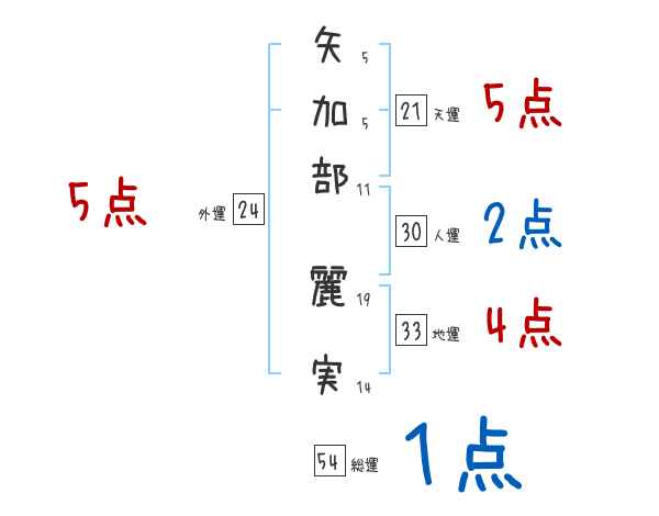 天運![]() | 矢加部麗実さんの天運は21画の5つ星!統率力がある。独立し成功する。名誉を手に入れる。 家系が持つ宿命的な運勢を表します。祖先から受け継いだ苗字ですので自分の力が及びません。家柄を象徴します。 |