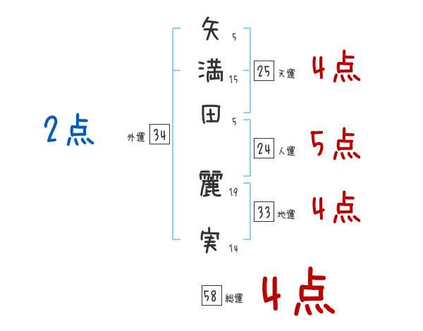 矢満田麗実さんの画数の鑑定結果