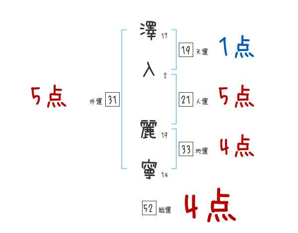 澤入麗寧さんの画数の鑑定結果