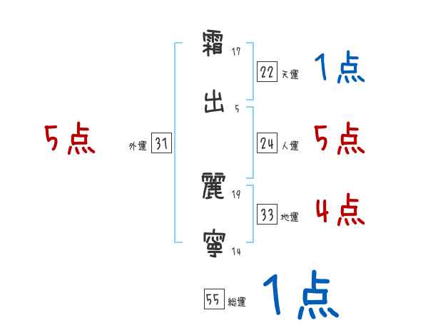霜出麗寧さんの画数の鑑定結果