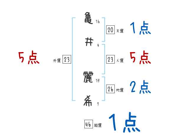 亀井麗希さんの画数の鑑定結果