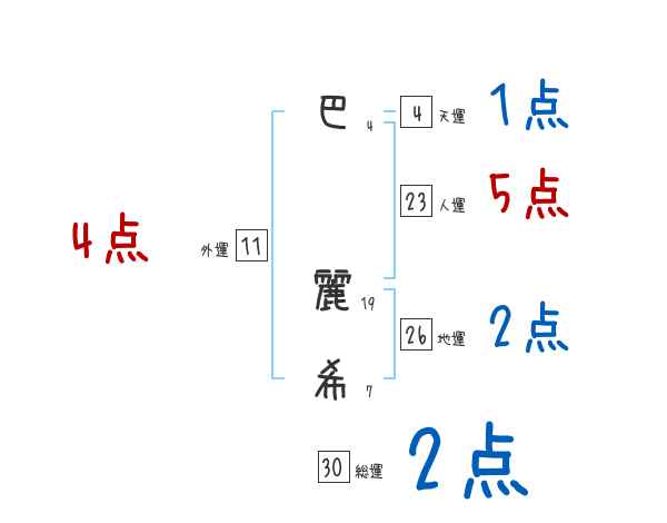 巴麗希さんの画数の鑑定結果