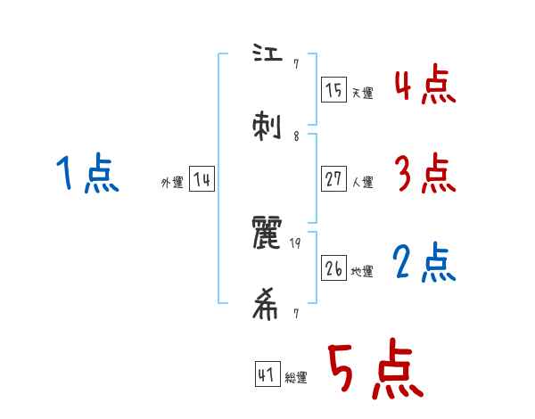 江刺麗希さんの画数の鑑定結果