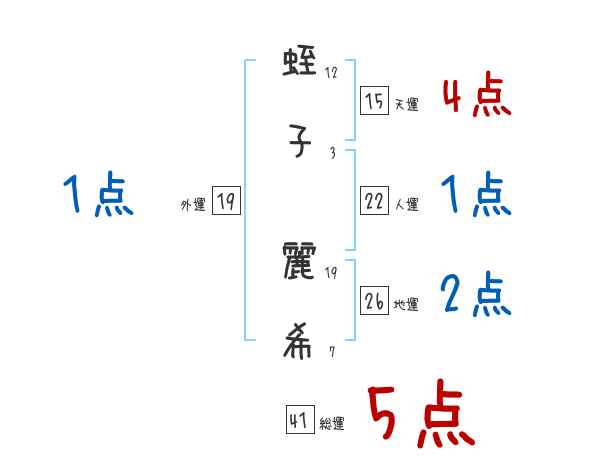 天運![]() | 蛭子麗希さんの天運は15画の4つ星!人徳があり出世する。順調に物事を進め円満な人生。 家系が持つ宿命的な運勢を表します。祖先から受け継いだ苗字ですので自分の力が及びません。家柄を象徴します。 |