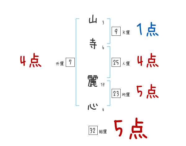 山寺麗心さんの画数の鑑定結果