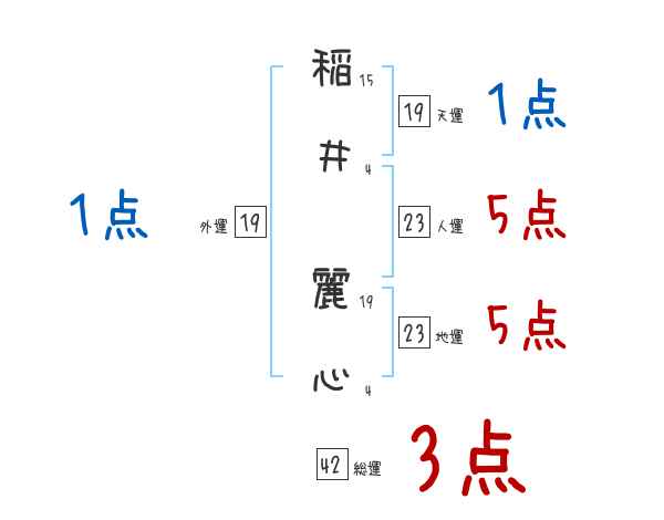総運![]() | 稲井麗心さんの総運は42画の3つ星!病気に注意。多芸であるが消極的でおとなしい。 あなたの人生を表す1番重要な運勢です。生涯を通じて影響する総合運となり、主に50歳以降の晩年期に影響を及ぼします。 |