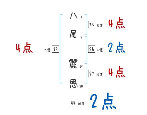 八尾麗恩さんの画数の鑑定結果