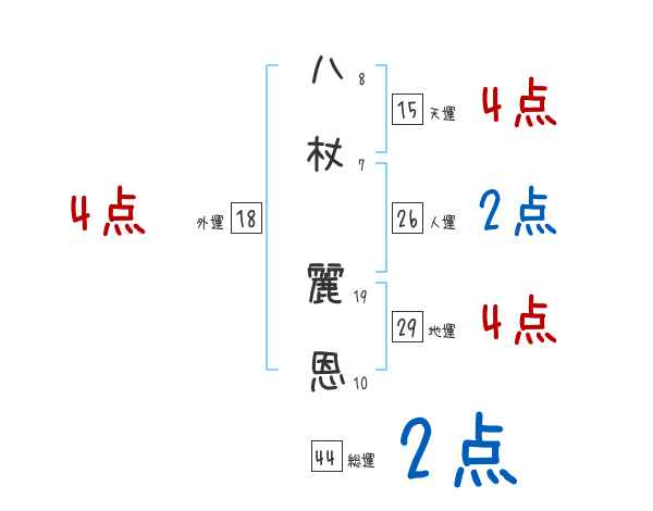八杖麗恩さんの画数の鑑定結果