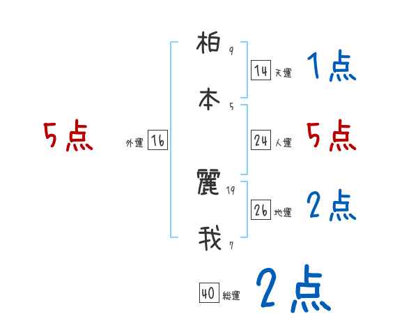 柏本麗我さんの画数の鑑定結果