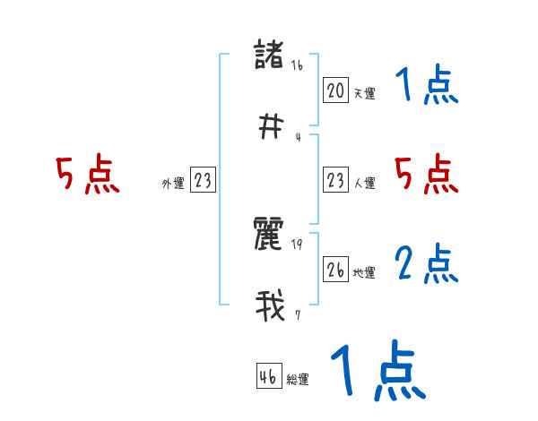 諸井麗我さんの画数の鑑定結果