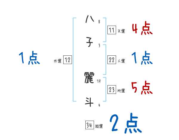 八子麗斗さんの画数の鑑定結果