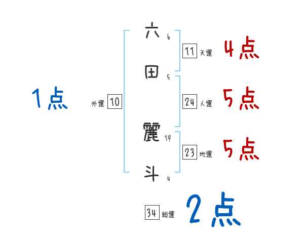 六田麗斗さんの画数の鑑定結果