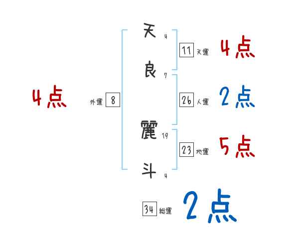 天良麗斗さんの画数の鑑定結果