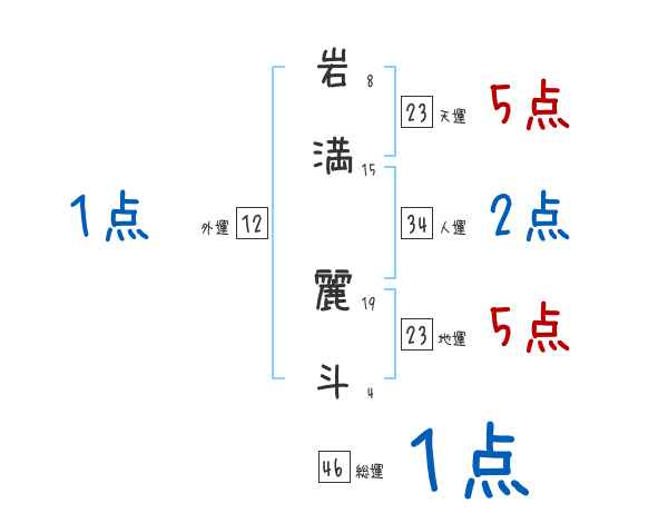 岩満麗斗さんの画数の鑑定結果