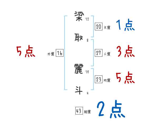 梁取麗斗さんの画数の鑑定結果