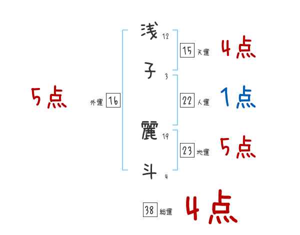 浅子麗斗さんの画数の鑑定結果