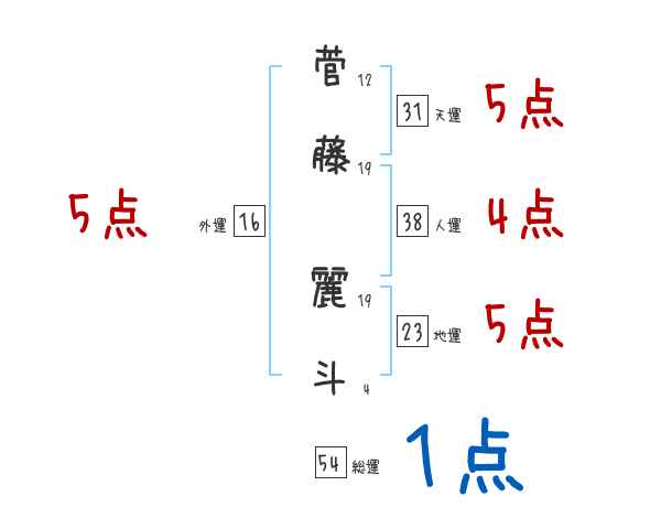 菅藤麗斗さんの画数の鑑定結果