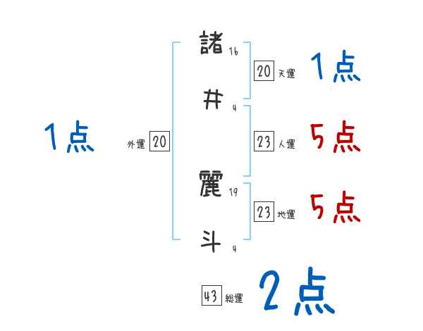 諸井麗斗さんの画数の鑑定結果