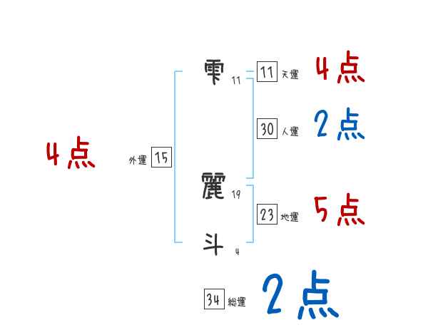外運![]() | 雫麗斗さんの外運は15画の4つ星!人徳があり出世する。順調に物事を進め円満な人生。 生活面を象徴する運勢です。外部から受ける影響力を表し、結婚運、家庭運や職場、環境への順応性を表します。 |