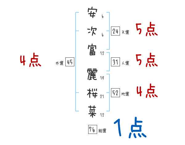安次富麗桜菜さんの画数の鑑定結果