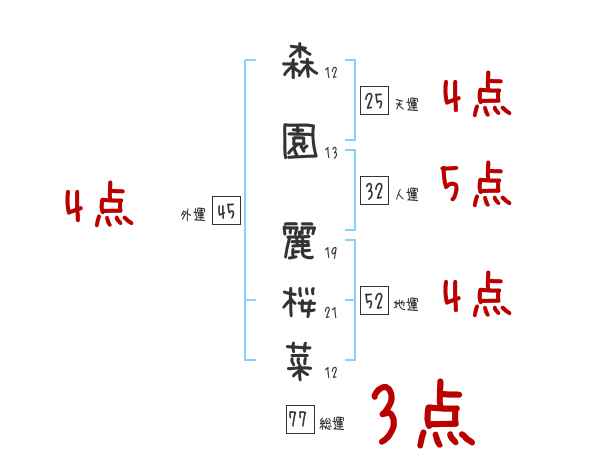 森園麗桜菜さんの画数の鑑定結果