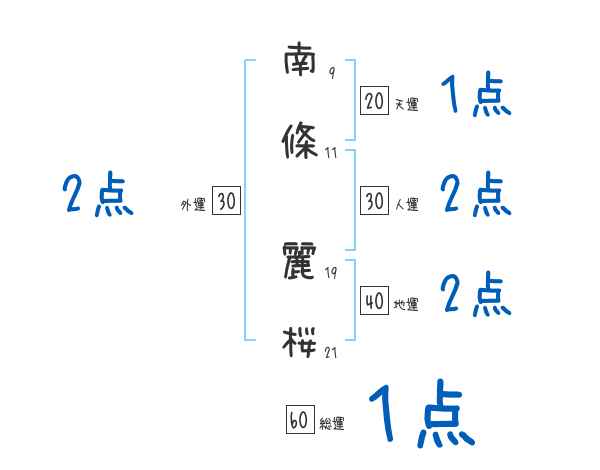 天運![]() | 南條麗桜さんの天運は20画の1つ星!社交が苦手。人とは違った才能があり波乱万丈な人生かも。 家系が持つ宿命的な運勢を表します。祖先から受け継いだ苗字ですので自分の力が及びません。家柄を象徴します。 |
