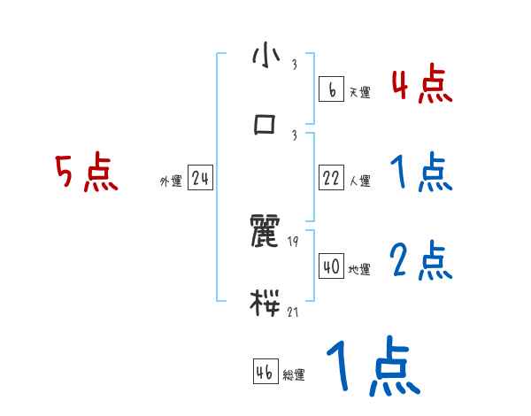 小口麗桜さんの画数の鑑定結果