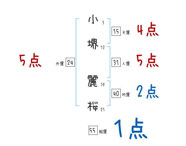 小堺麗桜さんの画数の鑑定結果