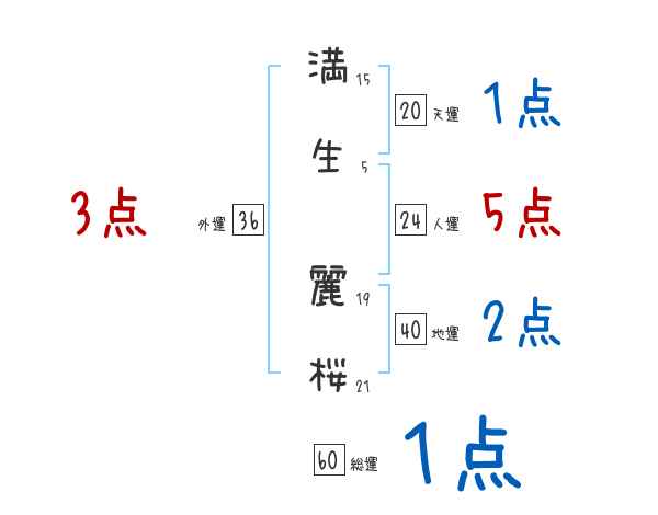 満生麗桜さんの画数の鑑定結果