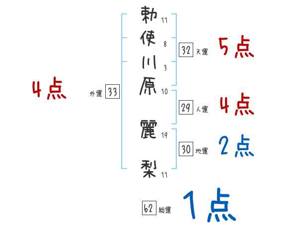 勅使川原麗梨さんの画数の鑑定結果