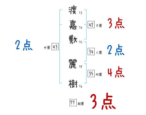 渡嘉敷麗樹さんの画数の鑑定結果