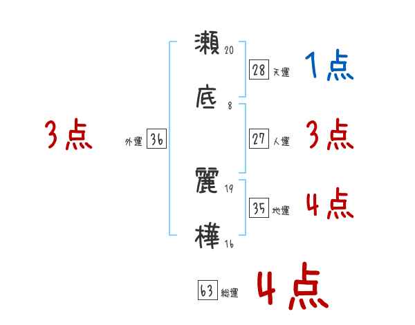 瀬底麗樺さんの画数の鑑定結果