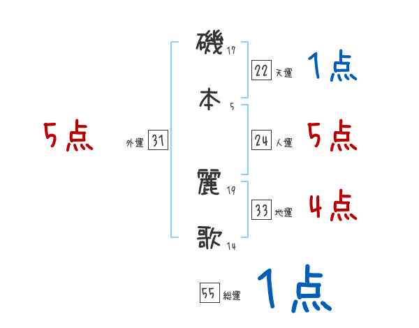 磯本麗歌さんの画数の鑑定結果