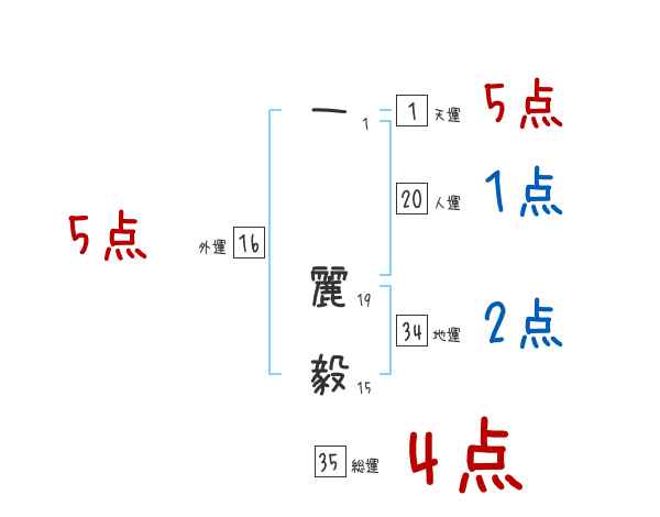 外運![]() | 一麗毅さんの外運は16画の5つ星!人望が厚く大きく発展する。逆転成功が見える。 生活面を象徴する運勢です。外部から受ける影響力を表し、結婚運、家庭運や職場、環境への順応性を表します。 |