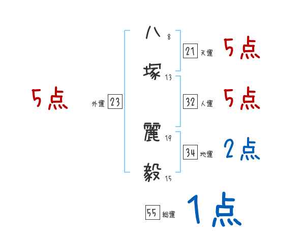 八塚麗毅さんの画数の鑑定結果