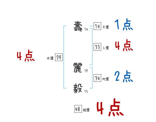 壽麗毅さんの画数の鑑定結果