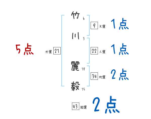 外運![]() | 竹川麗毅さんの外運は21画の5つ星!統率力がある。独立し成功する。名誉を手に入れる。 生活面を象徴する運勢です。外部から受ける影響力を表し、結婚運、家庭運や職場、環境への順応性を表します。 |