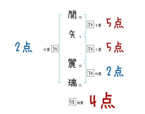 天運![]() | 関矢麗璃さんの天運は24画の5つ星!家庭運が良く順調な人生。金運にも恵まれる。 家系が持つ宿命的な運勢を表します。祖先から受け継いだ苗字ですので自分の力が及びません。家柄を象徴します。 |