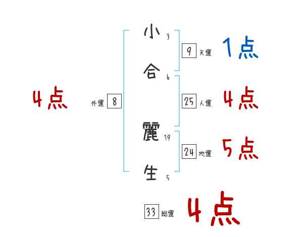 小合麗生さんの画数の鑑定結果