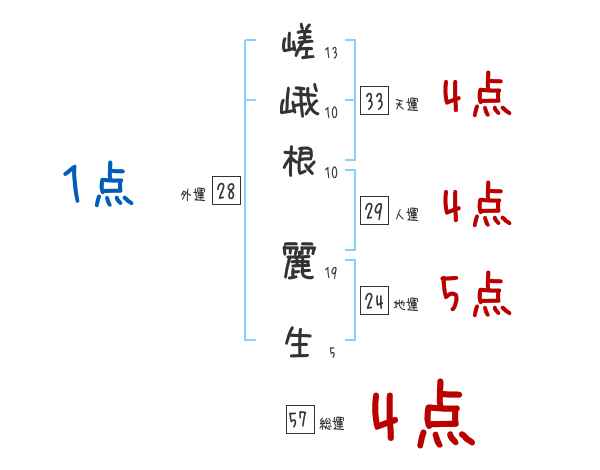 嵯峨根麗生さんの画数の鑑定結果