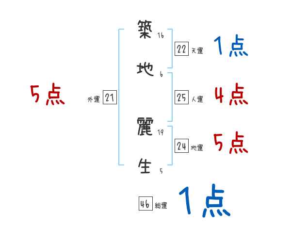 天運![]() | 築地麗生さんの天運は22画の1つ星!努力することが苦手ないっぽう手先が器用。芸術性にも優れる。 家系が持つ宿命的な運勢を表します。祖先から受け継いだ苗字ですので自分の力が及びません。家柄を象徴します。 |